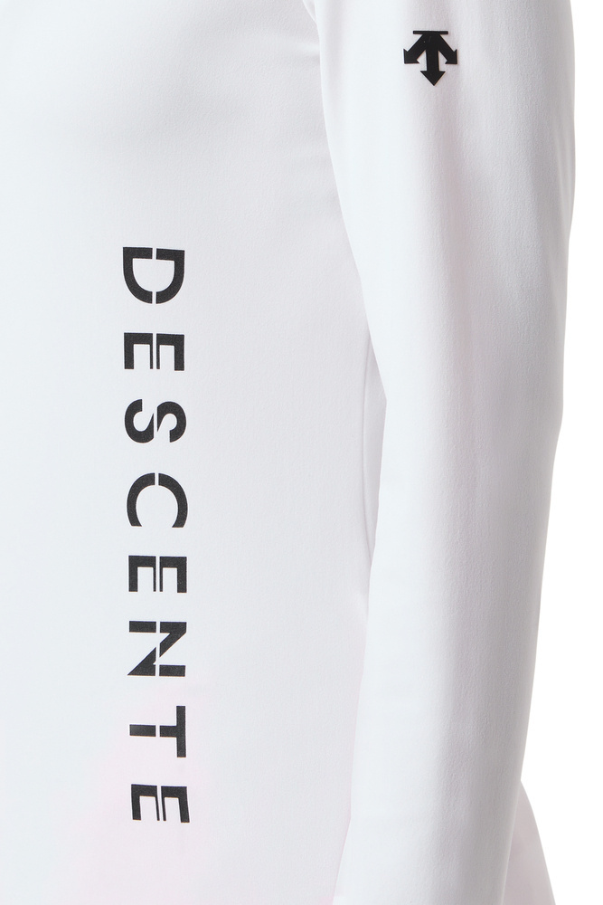 A straight turtleneck made of ECO Tricot Velor material. The printed Descente logo on the chest is made of satin fabric cut with a D-Laser. The timeless look, both classic and retro, goes with any jacket.