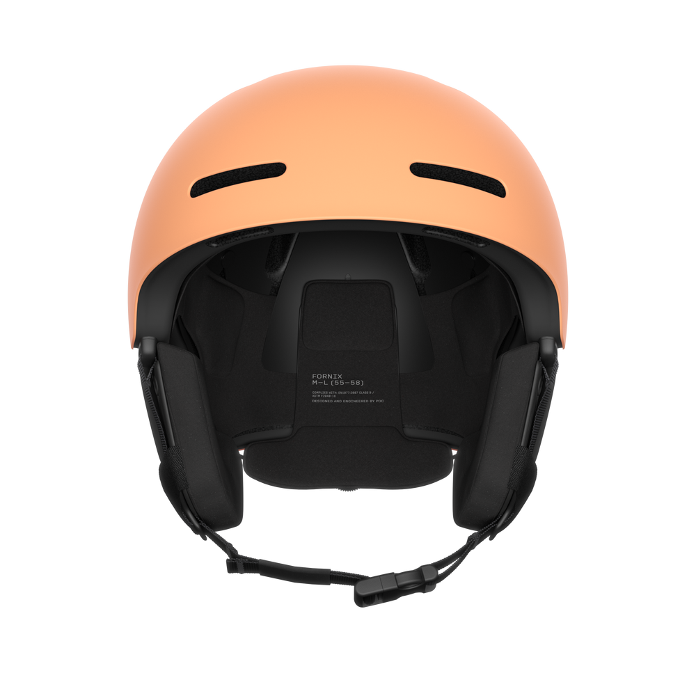 The POC Fornix Mips helmet is a refined and enhanced version of a classic, designed to offer a precise fit, low weight, and top-tier safety on the mountain. Featuring Mips® rotational impact protection and aramid bridge reinforcements, it delivers confidence in demanding conditions. Adjustable ventilation, goggle chimneys, and a 360° fit system ensure day-long comfort, while the detachable ear pads let you customize your ride.