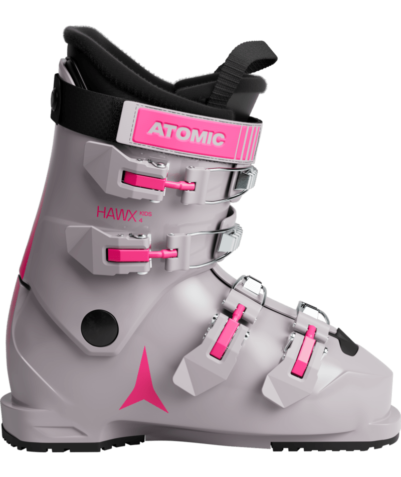 • The Atomic Hawx Kids 4 is a four-buckle junior ski boot for youngsters who need easy, lightweight handling in a high-performance package.