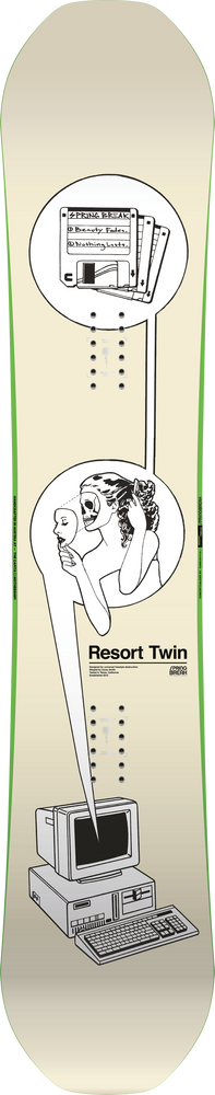 The CAPiTA Resort Twin is the board for Spring Break fans who want to ride a traditionally sized snowboard on groomers and in the park, combining the unique Spring Break vibe with a true twin shape made for the masses.