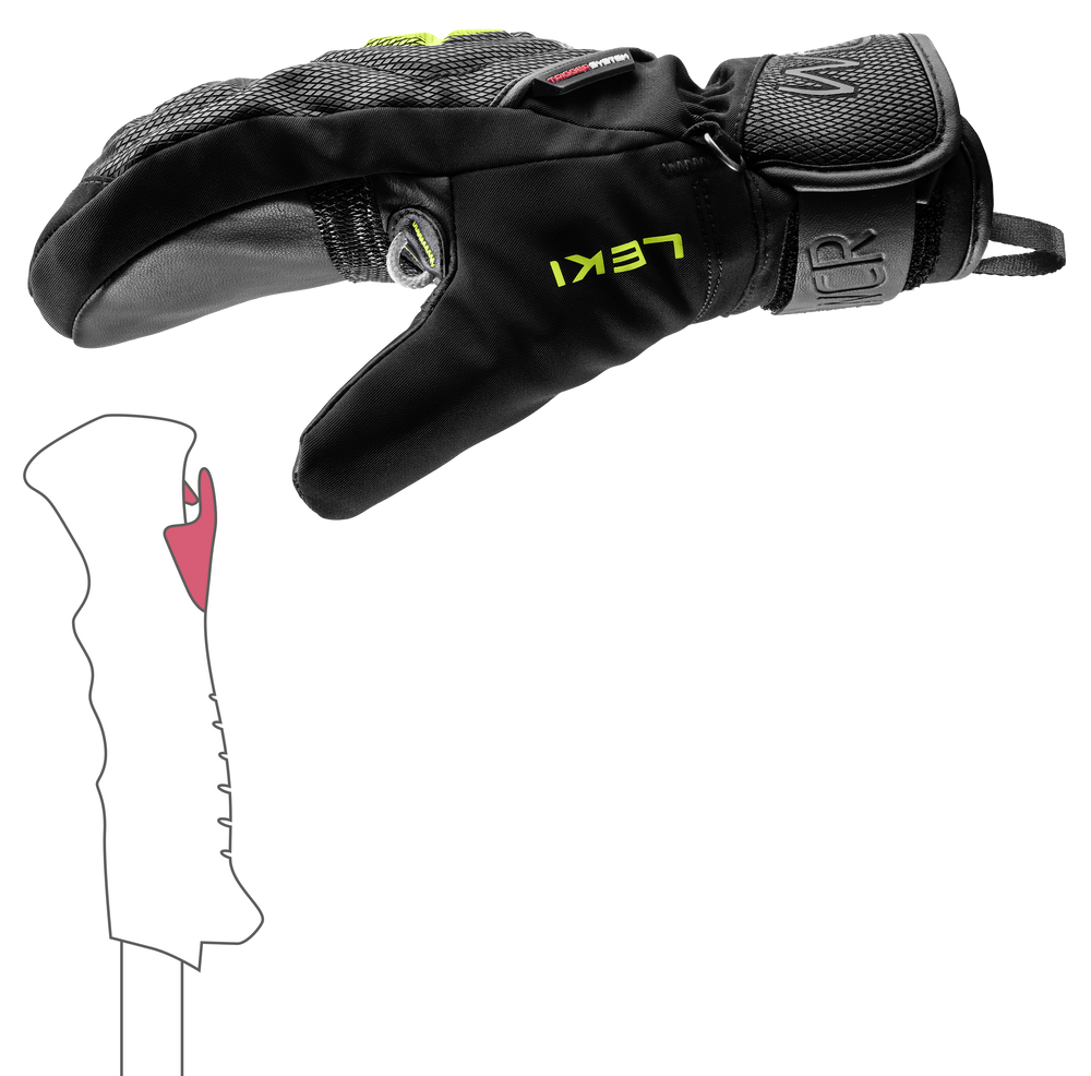 Wewnątrz rękawicy znajduje się membrana SOFT-TEX®, która chroni przed wilgocią, oraz izolacja Thinsulate™ i Hyperloft, która gwarantuje doskonałe utrzymanie ciepła. System Trigger System pozwala na błyskawiczne wpinanie kijów, a mankiet z neoprenu i elastyczne strefy Flex Cuff ułatwiają dopasowanie do nadgarstka.