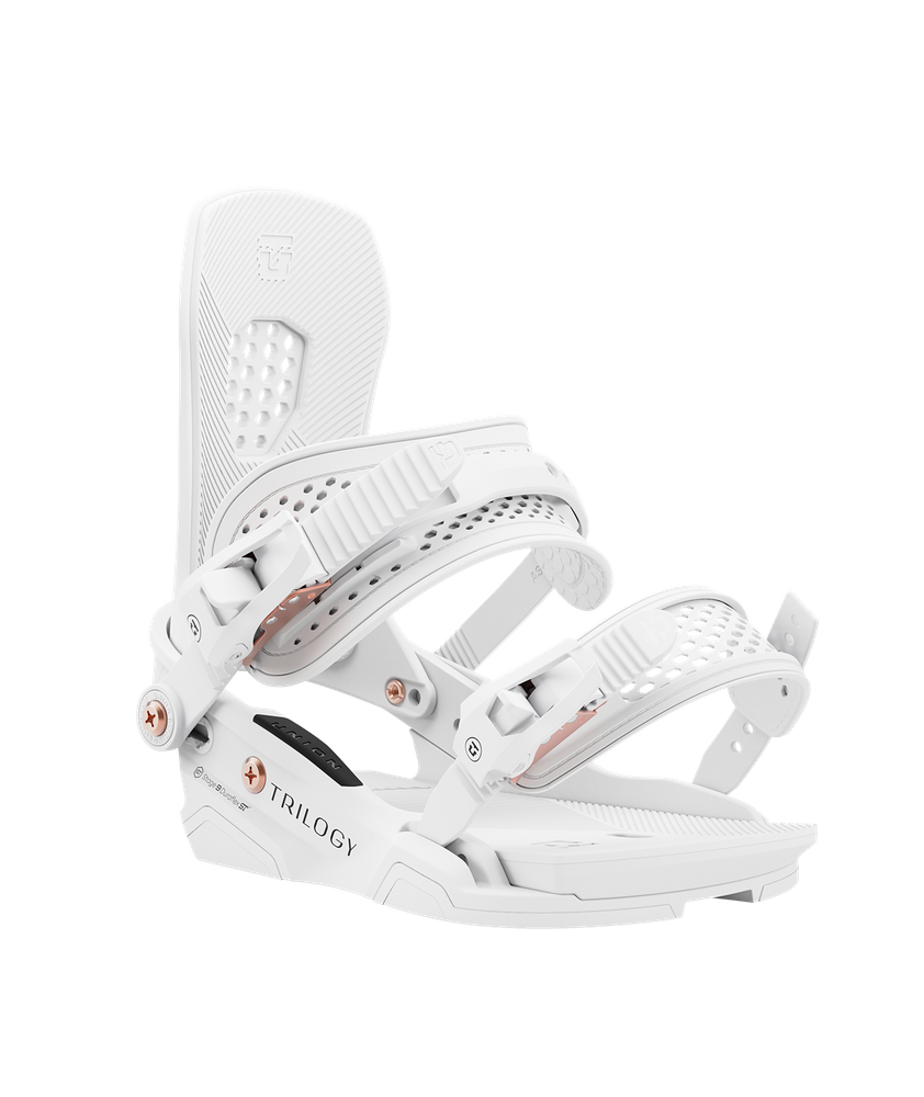 Union Trilogy zapewnia płynne i komfortowe odczucie jazdy, które jest przeznaczone dla każdej riderki, każdych warunków i każdego terenu. Więcej snowboardzistek wybiera jazdę na wiązaniach Union Trilogy niż na jakimkolwiek innym wiązaniu snowboardowym dostępnym obecnie na rynku. Jeździj jak najlepsi - jeździj na Union Trilogy. Niezwykle wszechstronne wiązanie do każdego rodzaju jazdy na desce.