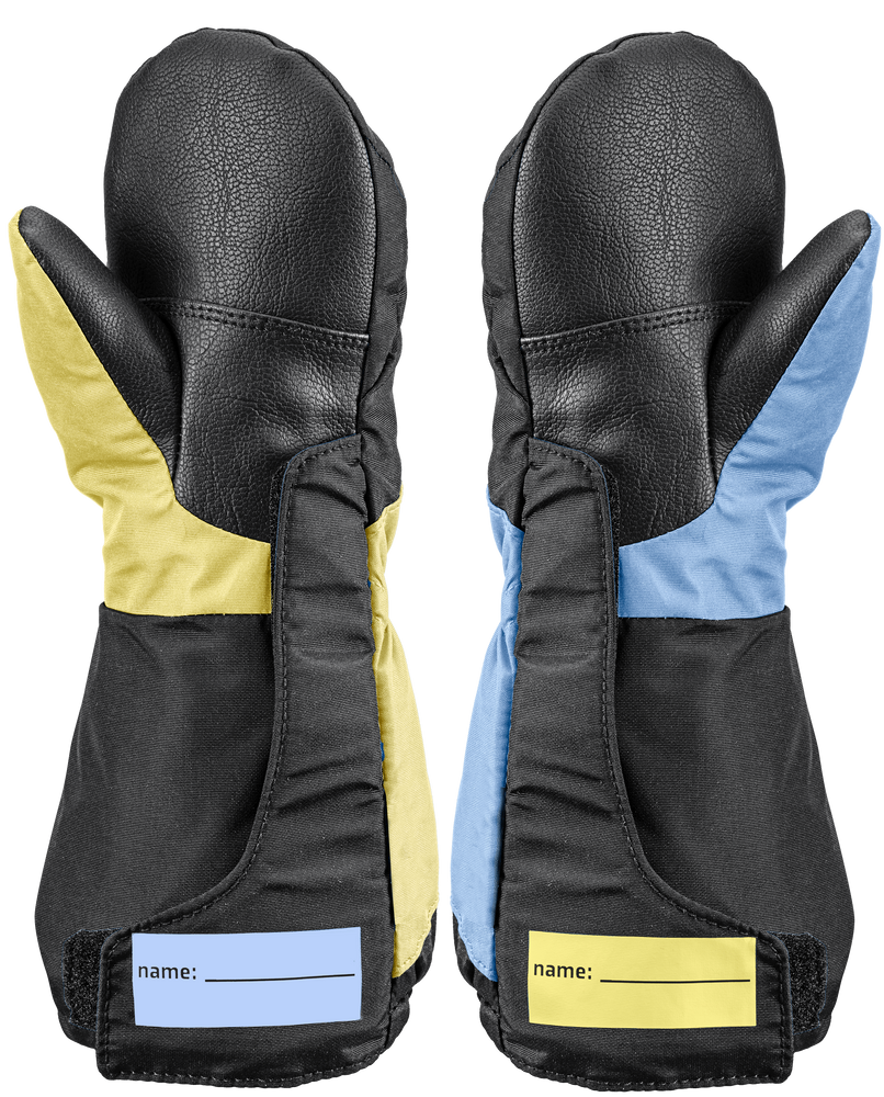 Dodatkowo każda para ma miejsce na podpis (name tag), co jest niezwykle praktyczne w żłobku, przedszkolu czy na stoku.
