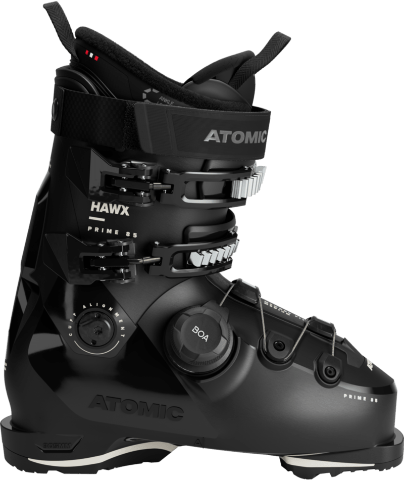 Narciarki all mountain szukające butów o średnio szerokiej skorupie 100 mm i miękkim fleksie docenią model Atomic Hawx Prime 85 BOA W. Wyróżnia się zastosowaniem BOA® Fit System w dolnej części skorupy – systemu precyzyjnego dopasowania do stopy z możliwością mikroregulacji w obu kierunkach. Najnowsza odsłona konstrukcji Prolite łączy smukły profil ze strategicznymi wzmocnieniami w kluczowych strefach, aby zapewnić zjazdową wydajność. Energy Link – połączenie w tylnej części butów – zapewnia błyskawiczną reaktywność i wrażenie zespolenia z nartami. Miękki liner Mimic Silver z rozwiązaniem Ankle Lock oferuje anatomiczne dopasowanie tuż po wyjęciu z pudełka oraz możliwość personalizacji w procesie formowania na gorąco Mimic. Skorupkę, cholewkę i liner butów można w kilka minut dopasować do anatomii stóp dzięki technologii termoformowania Memory Fit. Aby zapewnić dopasowanie do kobiecej anatomii, wyposażono je w niższy mankiet i zapewniono większą objętość na wysokości nogi. Aby uzyskać jeszcze więcej miejsca w okolicy łydki, wystarczy wyjąć spojler mankietu Adaptive Fit System (AFS).